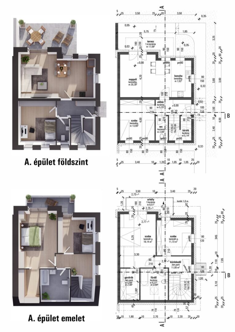 Kert és terasz: Saját 358 m2 telek, zöldterület a szabadidős tevékenységekhez, valamint egy kényelmes terasz, erkély.