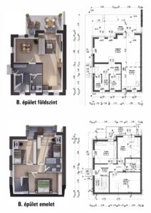 Innovatív tervezés: Gyakorlatias elrendezés, világos belső terek, három vagy négy szoba, két fürdőszoba és nappali. Modern, letisztult megjelenés.